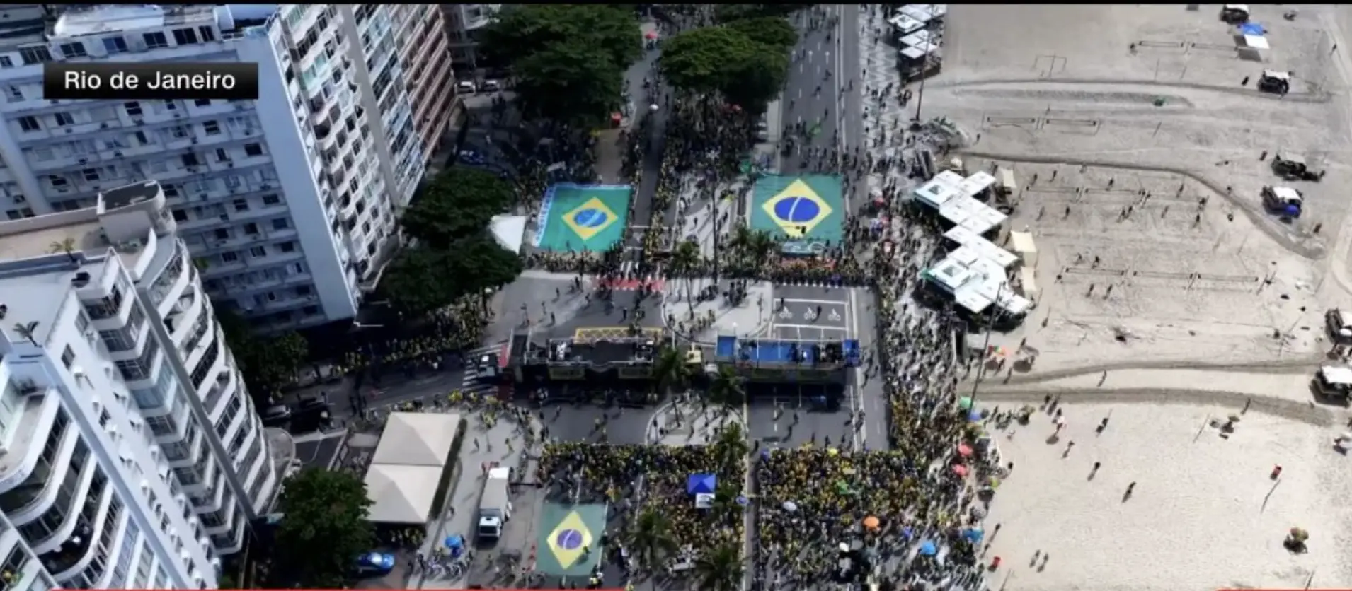 • 21/04/202432,7 mil pessoas em Copacabana. Ato no feriado de Tiradentes, marcado por falas religiosas e ataques ao presidente Lula.