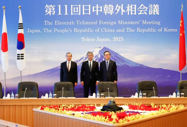 Os principais diplomatas do Japão, China e Coreia do Sul se reuniram em Tóquio no sábado, buscando um ponto em comum sobre questões econômicas e de segurança do Leste Asiático em meio à crescente incerteza global.