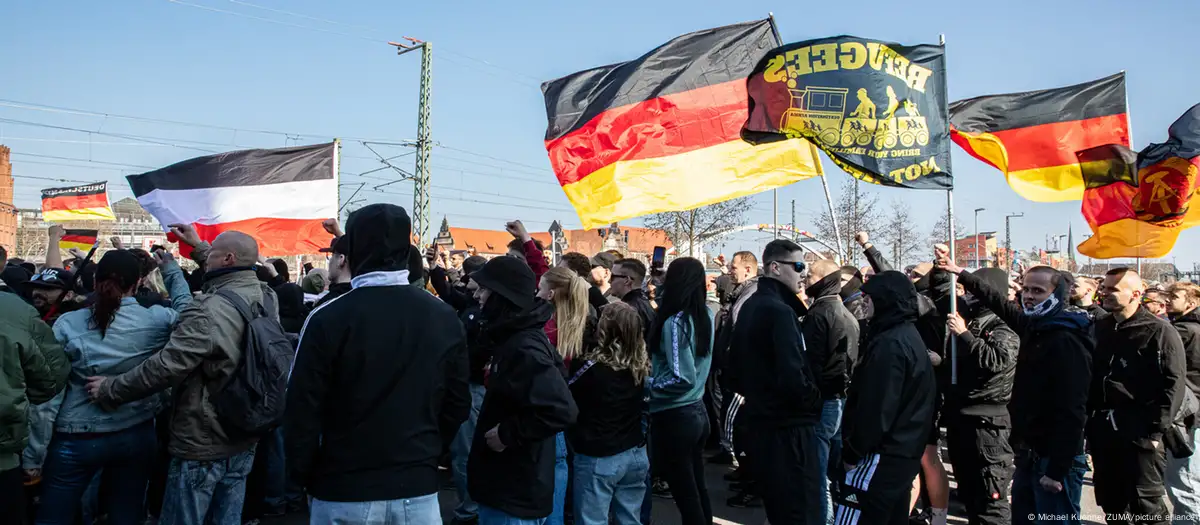 Segundo a imprensa alemã, foi possível ouvir vários manifestantes de extrema direita cantando antigas músicas de organizações do antigo regime nazista (1933-1945)