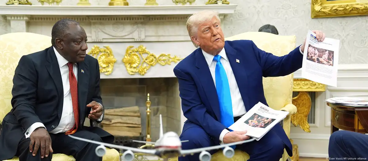 O presidente dos Estados Unidos, Donald Trump, humilhou publicamente o presidente da África do Sul, Cyril Ramaphosa, nesta quarta-feira (21/05), na Casa Branca, ao fazer alegações enganosas sobre um “genocídio branco” no país. A cena, acompanhada pela imprensa e transmitida ao vivo, lembra a “emboscada” feita em fevereiro contra o presidente ucraniano Volodimir Zelenski, acusado por Trump, na ocasião, de incitar uma “terceira guerra mundial”.