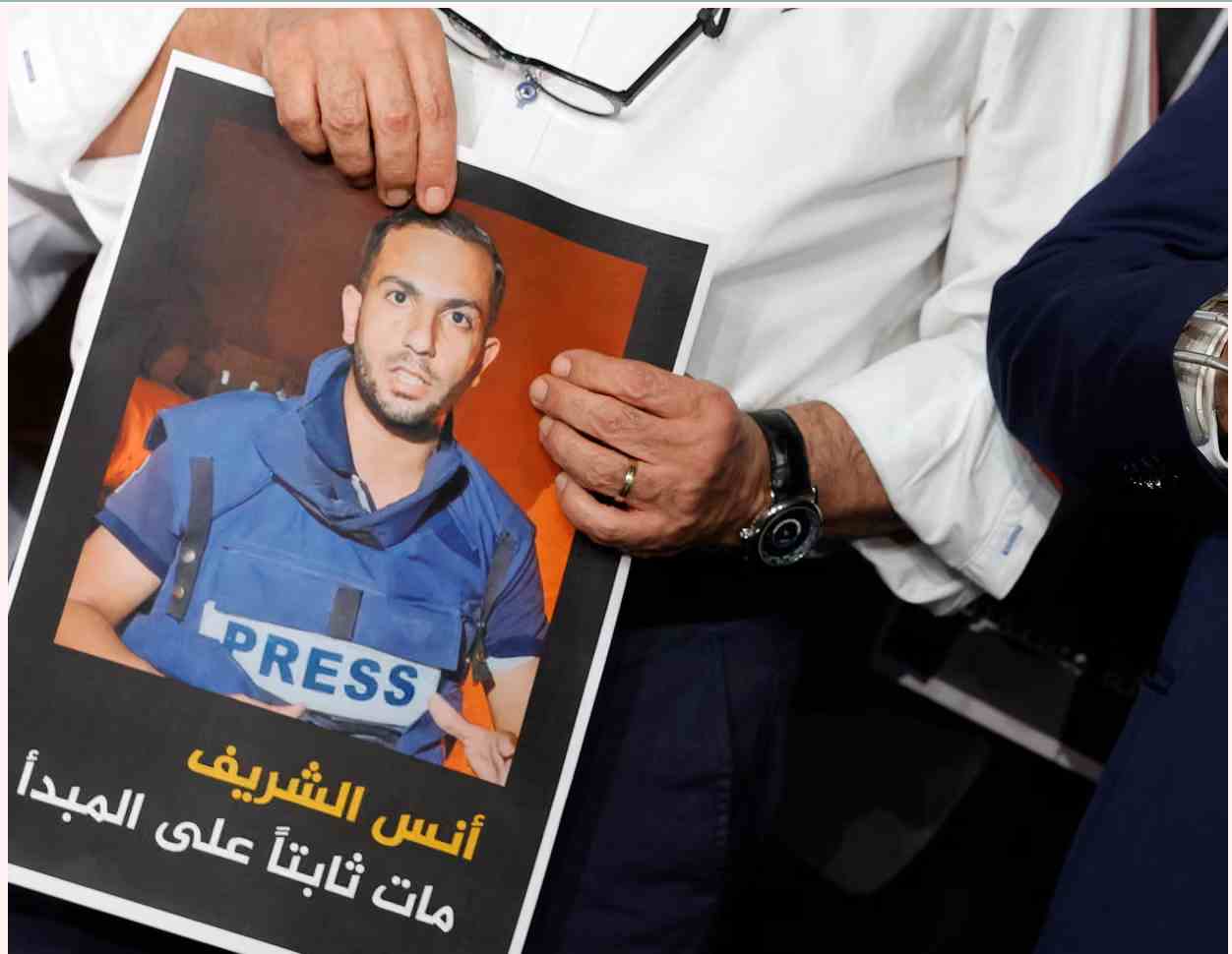 Embora seja ilegal atacar jornalistas, o CPJ afirmou que, no mesmo período, 26 repórteres foram vítimas de assassinatos seletivos, que descreveu como assassinatos. O mais recente foi o correspondente da Al Jazeera, Anas al-Sharif, de 28 anos, morto no domingo em sua redação improvisada em frente a um hospital, junto com quatro colegas.
