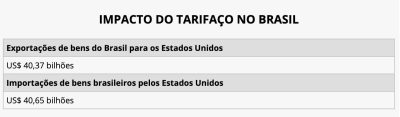 Em 30 de julho, foi divulgado o tarifaço de 40%, mas já havia uma taxação adicional de 10% anunciada em abril.