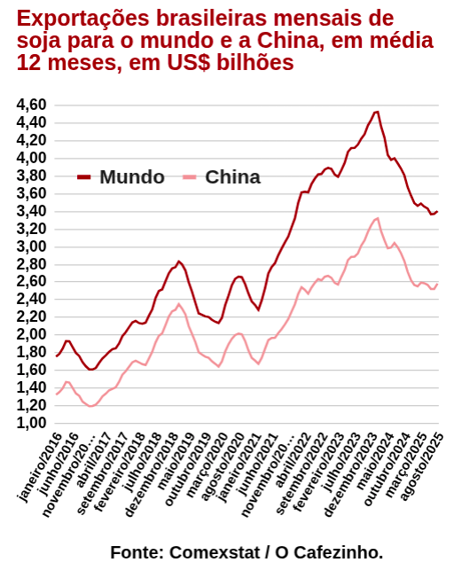 A guerra comercial, portanto, acelera uma tendência que já vinha se desenhando: a crescente dependência chinesa da soja brasileira em detrimento da americana, com impactos duradouros para os produtores de ambos os países.