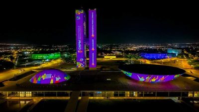 Projeção luminosa no Congresso anuncia a 5ª Conferência. | Ricardo Stuckert/PR