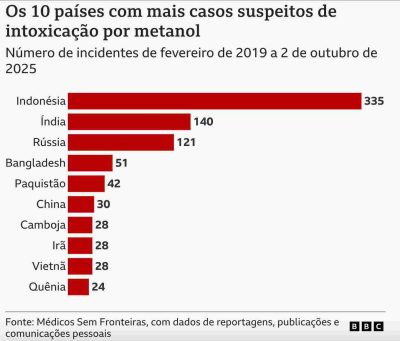 Segundo dados do Médicos Sem Fronteiras (MSF), estima-se que cerca de 40 mil pessoas em todo o mundo já tenham sido afetadas por intoxicação por metanol desde 1998, resultando em aproximadamente 14,4 mil mortes.
