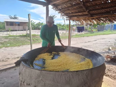 O cacique Jonas Mura, na produção de farinha em sua aldeia | Arquivo pessoal