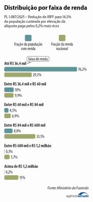 De acordo com o pesquisador, a massa de contribuintes mais relevante (entre os que possuem maior renda) está concentrada nas rendas superiores a R$ 800 mil. Ele afirmou que relativamente poucas pessoas pagarão o imposto mínimo na faixa de renda próxima aos R$ 600 mil anuais.
