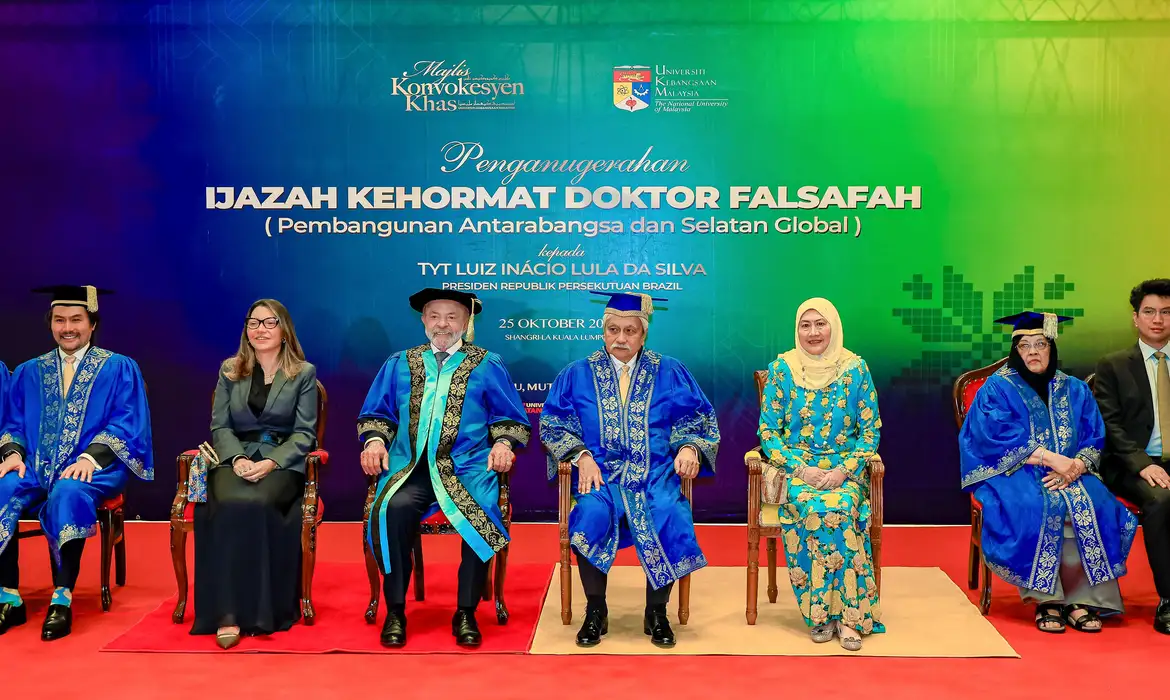 O presidente Luiz Inácio Lula da Silva voltou a criticar a continuidade da guerra em Gaza e a resistência mundial em criar um Estado palestino. A declaração foi dada neste sábado (25), durante a cerimônia de recebimento do título de doutor Honoris Causa em Filosofia e Desenvolvimento Internacional do Sul Global, concedido pela Universidade Nacional da Malásia, em Putrajaya, capital administrativa da Malásia.