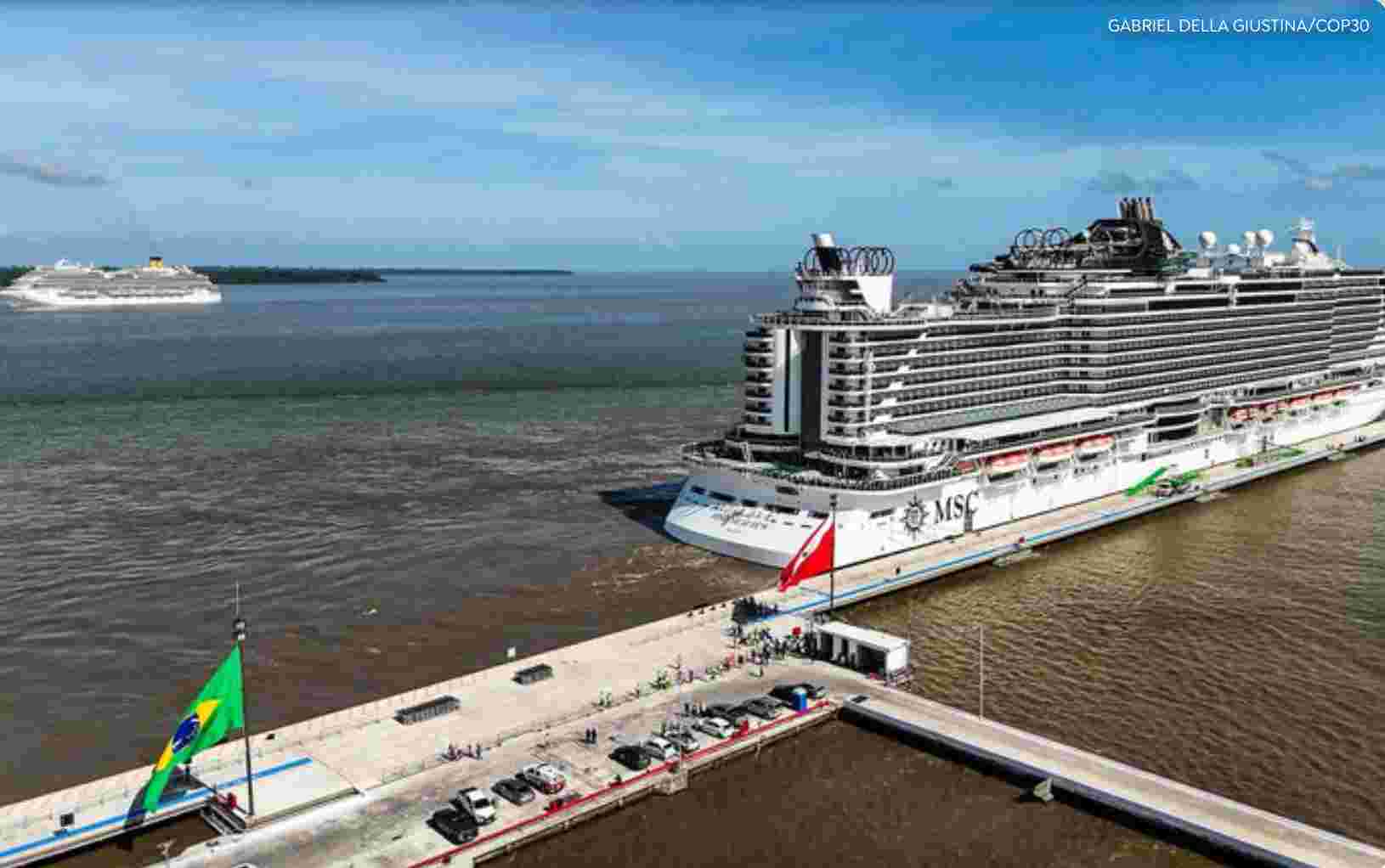 Os dois navios de cruzeiro funcionarão como hotéis flutuantes para delegações e outros participantes da COP 30 com 6 mil leitos. Porto de Outeiro recebeu investimentos de R$ 233 milhões na requalificação