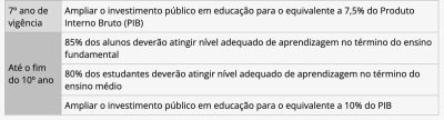 O novo PNE valerá para o decênio contado a partir da publicação da futura lei – inicialmente, o período seria 2024-2034. A proposta substituirá a Lei 13.005/14, que definiu o PNE 2014-2024 e teve a vigência prorrogada até o final deste ano.
