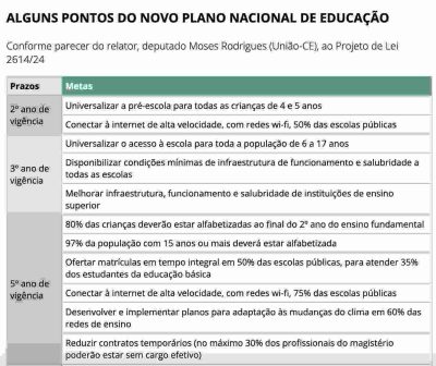 A versão aprovada organiza o PNE em 19 objetivos estratégicos, que vão da educação infantil ao ensino superior, indicando metas e prazos. O texto também prevê a valorização dos profissionais da educação.