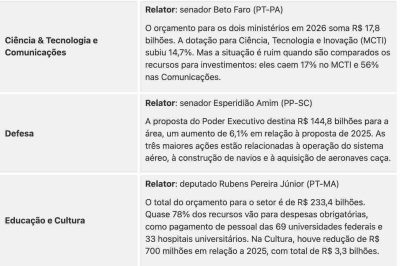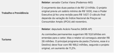 A proposta orçamentária aguarda o relatório final do deputado Isnaldo Bulhões Jr. (MDB-AL). Segundo o presidente da CMO, senador Efraim Filho (União-PB), o texto deve ser publicado na segunda-feira (15). A votação da matéria na comissão está prevista para o dia seguinte (16).