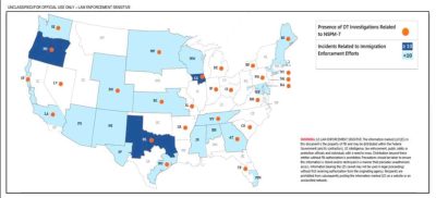 Em outro documento, o mapa do FBI também listou 27 locais onde há investigações em andamento sobre terrorismo doméstico que se enquadram na NSPM-7, embora o relatório não especifique se todos esses casos estão relacionados a ameaças contra o ICE. O FBI não respondeu aos pedidos de esclarecimento. O relatório também observou que alguns casos da NSPM-7 são anteriores ao memorando do presidente, mas estão alinhados com seus objetivos.