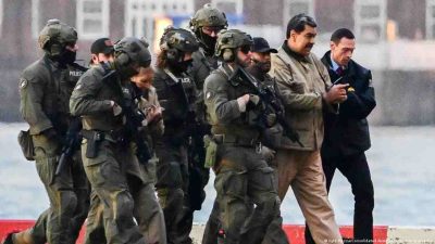 Os EUA prenderam Maduro e sua esposa na madrugada de sábado em sua casa em uma base militar e os colocaram a bordo de um navio de guerra americano para enfrentarem um processo em Nova York, em uma acusação do Departamento de Justiça que os acusa de participação em uma conspiração de narcoterrorismo. Maduro declarou sua inocência durante sua primeira aparição em um tribunal de Manhattan na segunda-feira.