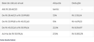 Além da tabela mensal, a Receita Federal também aplicará isenção e redução no cálculo anual do imposto: