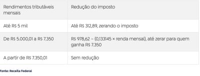 Para rendas entre R$ 5.000,01 e R$ 7.350, há uma redução parcial e decrescente do imposto: