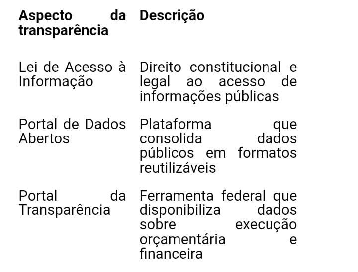 A transparência pública pressupõe que informações sobre decisões, gastos, políticas e transferências de recursos do setor público estejam disponíveis de forma acessível e significativa para todos os interessados. No Brasil, o direito ao acesso à informação é assegurado pela Constituição Federal de 1988 e regulamentado pela Lei de Acesso à Informação (Lei nº 12.527/2011). A transparência ativa demanda que órgãos públicos publiquem dados em formatos que possam ser lidos e reutilizados sem obstáculos desnecessários, idealmente em formatos digitais abertos e acessíveis, facilitando o controle social e o escrutínio público (LAI, art 3º) .
