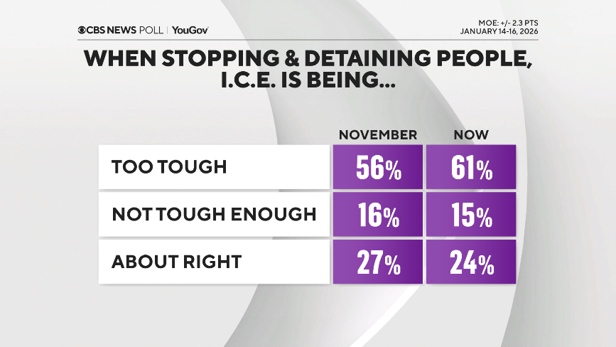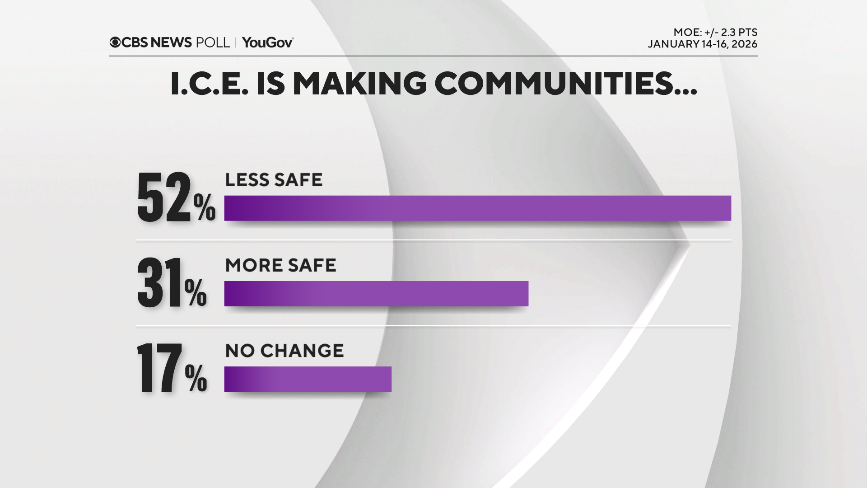 A pesquisa, realizada em janeiro de 2026, mostra que mais estadunidenses agora rotulam as ações do Ice como duras demais ao deter e abordar pessoas. Portanto, cresce a ideia de que o programa de deportação do presidente Trump mira além de criminosos perigosos. No entanto, a maioria esmagadora dos republicanos julga que manifestantes foram longe demais em suas ações.