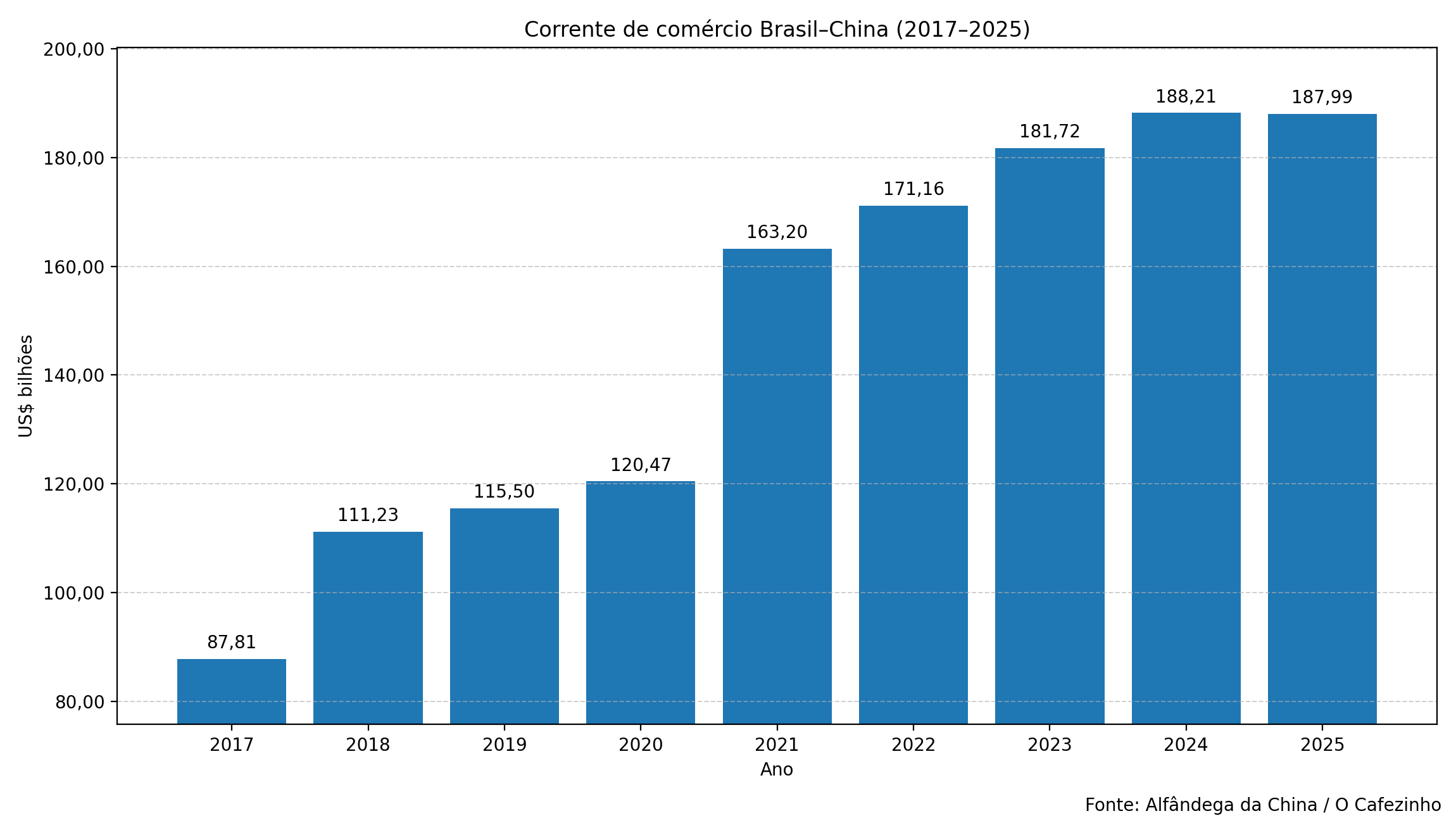 E o Brasil aparece como peça central nessa engrenagem. A dependência chinesa de produtos brasileiros atingiu patamares impressionantes em 2025.