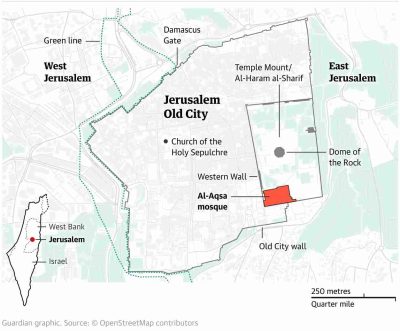 As ações da polícia de Jerusalém e da força de segurança interna Shin Bet, ambas agora sob liderança da extrema-direita, representam uma ruptura no acordo do status quo que remonta ao período pós-guerra de 1967, o qual estipula que apenas muçulmanos têm permissão para orar no complexo sagrado ao redor da mesquita, conhecido como Al-Haram al-Sharif pelos muçulmanos, que também engloba o Domo da Rocha, santuário do século VII. Para os judeus, trata-se do Monte do Templo, local do primeiro e do segundo templo, do século X a.C., destruídos pelos romanos em 70 d.C.