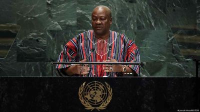 O presidente de Gana, John Dramani Mahama, fala à Assembleia Geral da ONU em setembro passado | Jeenah Moon/Reuters