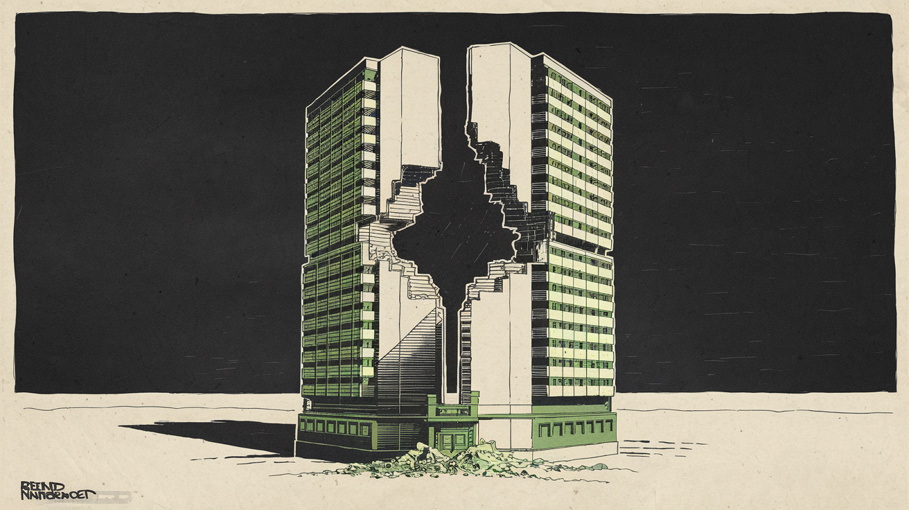 O edifício residencial de vários andares, com a estrutura central severamente comprometida, condensou em concreto destruído uma mensagem política que até poucos dias atrás parecia improvável.