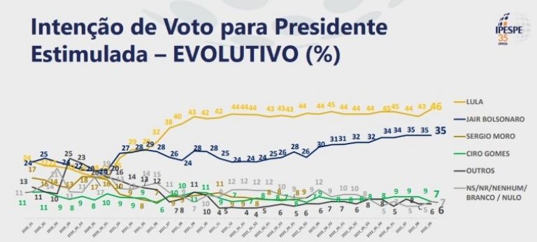 Nesta sexta-feira, 23, a Ipespe divulgou nova rodada de pesquisa que mostra o crescimento de três pontos do ex-presidente Lula (PT), que se aproxima da vitória no 1° turno.