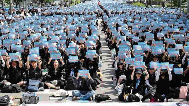 Nas últimas seis semanas, dezenas de milhares de professores realizaram protestos na capital Seul, alegando que estão agora com tanto medo de serem chamados de abusadores de crianças que são incapazes de impor autoridade em sala de aula ou intervir quando elas brigam.