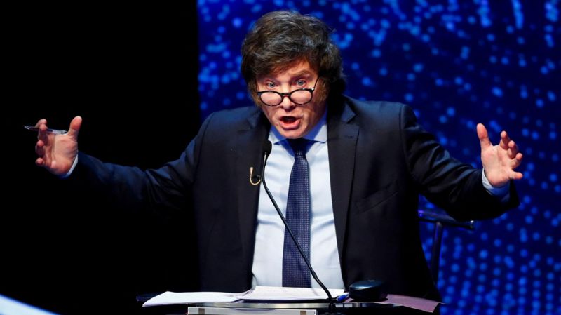 Milei, que se define como “anarcocapitalista” e promete fazer cortes acentuados em gastos sociais e subsídios, disputa a presidência argentina com o ministro da Economia, Sergio Massa, e com a oposicionista Patrícia Bullrich.