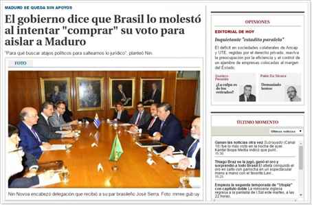Nin Novoa demonstrou profunda indignação com José Serra, que “viria ao Uruguai com a pretensão de suspender o transpasso [da presidência pro tempore do Uruguai para a Venezuela] e que, além disso, se se suspendesse [o transpasso], nos levariam nas suas negociações com outros países, como querendo comprar o voto do Uruguai”.