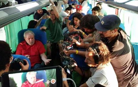 Lula pega carona no ônibus da comunicação e agradece a cobertura da mídia alternativa